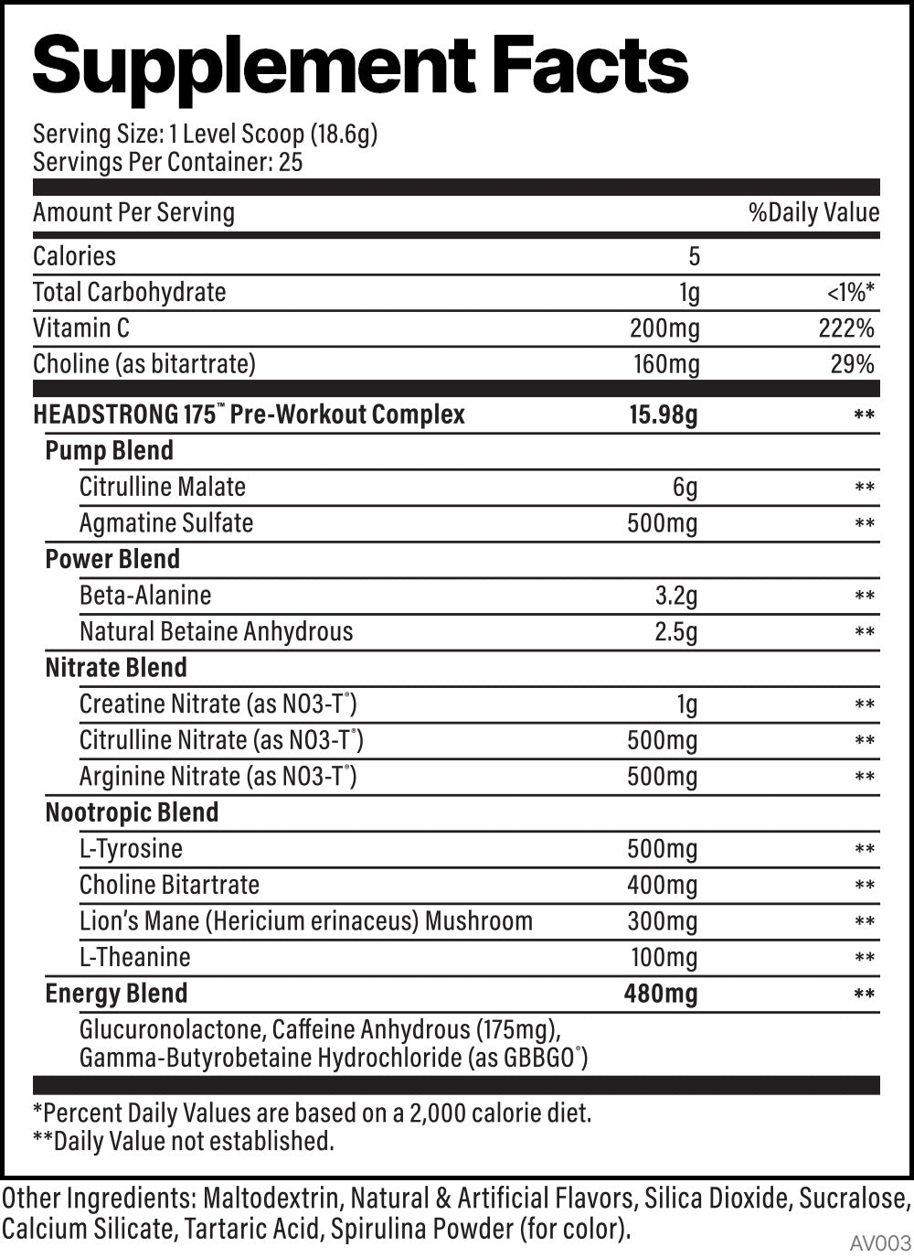 Introducing Headstrong 175 by Vitasport. This product is packed with all the same potent, in-demand pre-workout ingredients found in the increasingly popular Headstrong formula (we’re talking 2g N03-T® Nitrate Technology, 1.3g Nootropics, 6g Citrulline Malate, and 3.2g Beta-Alanine), but with only 175mg of caffeine and no other stimulants. You’ll still get all the pump, power, and focus you love, just in a “lower-stim” version.